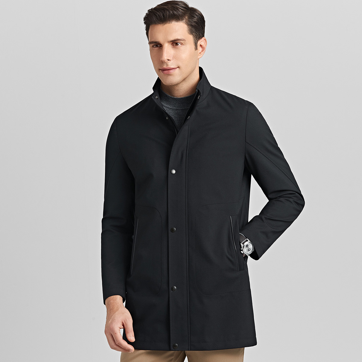 秋季男士柔软风衣保暖休闲风衣男士中长款男装